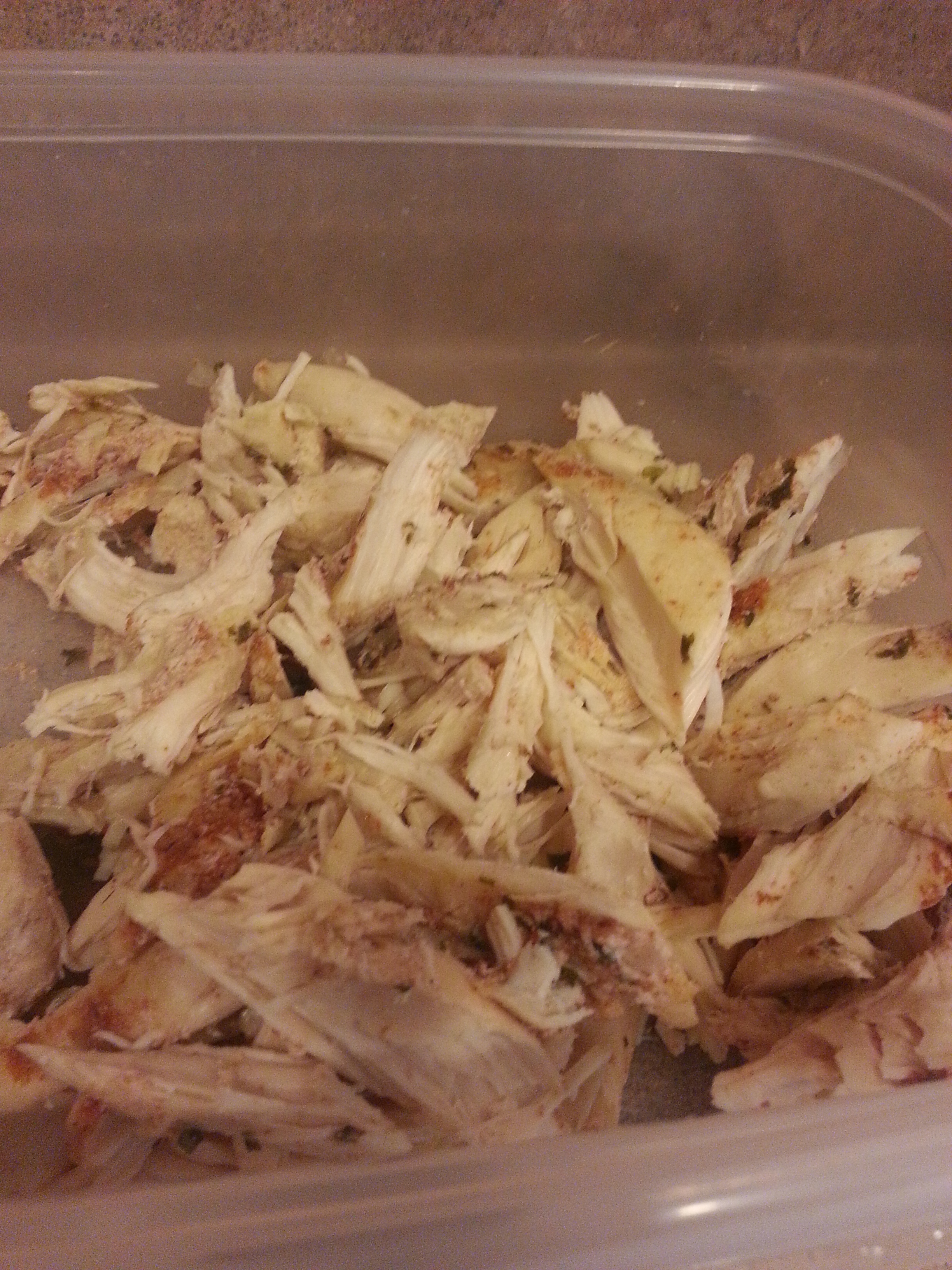 Okay, on to the prep. In the morning, I threw chicken in the crockpot according to this recipe I found on Pinterest (Cool Ranch Chicken Tacos). At around 4pm, I pulled the chicken out and shredded it for dinner that night and my mason jar salads.